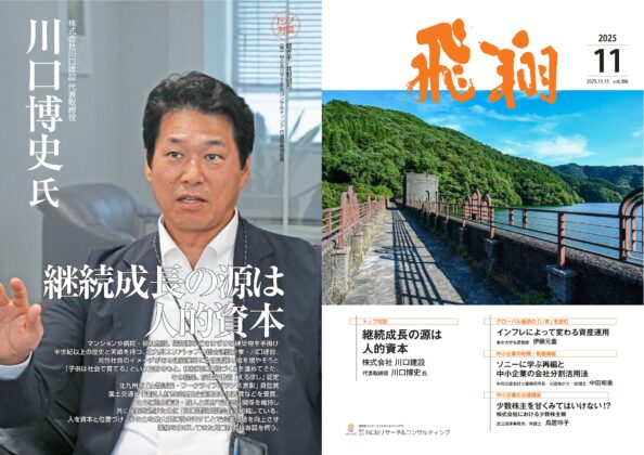このたび株式会社NCBリサーチ&コンサルティングが発行する経営情報誌『飛翔』(2025年11月号)に同社 代表取締役社長 井野誠司様と当社の代表取締役 川口博史との対談記事が掲載されました。